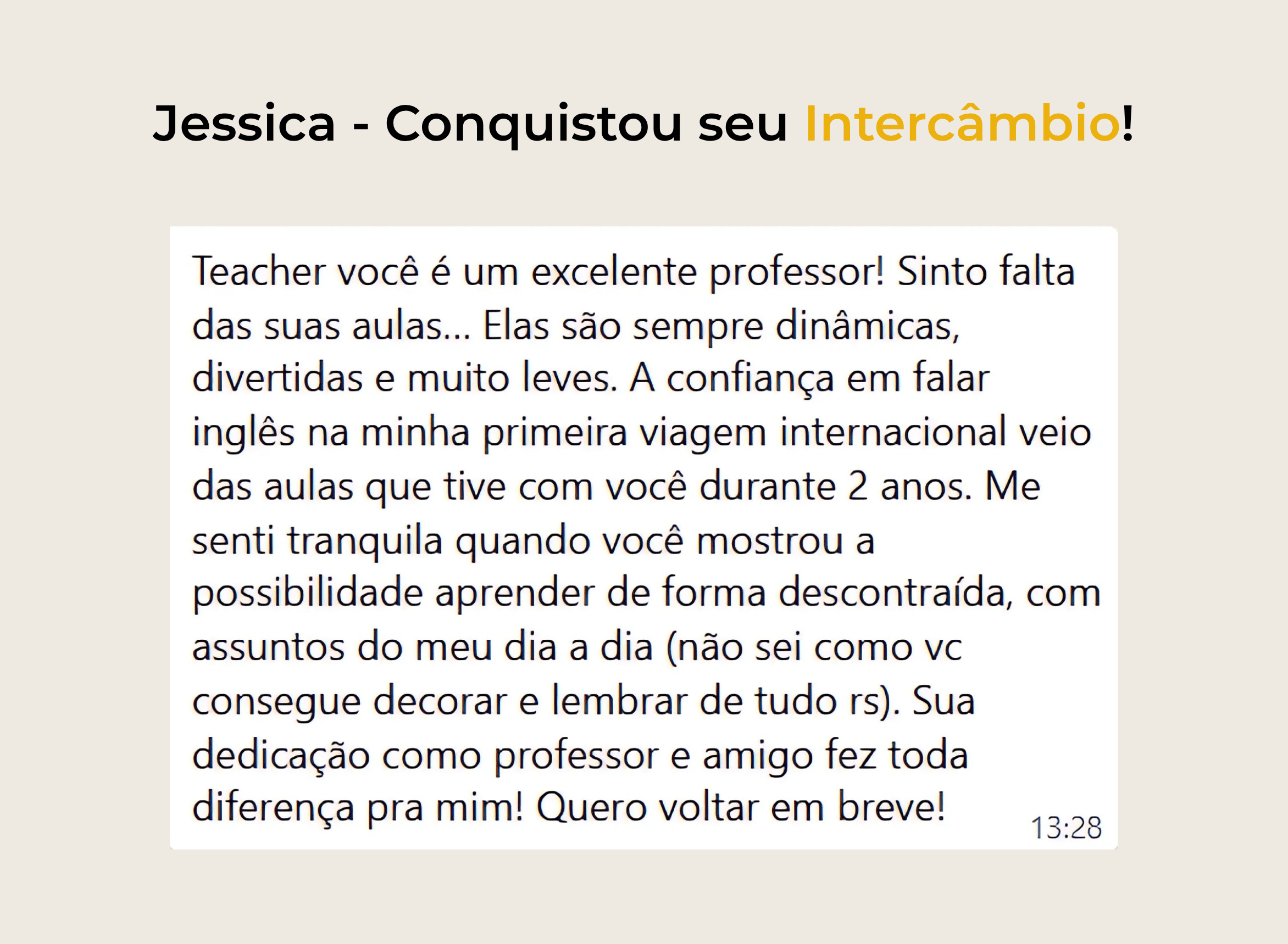 Os alunos que se prepararam comigo para entrevistas foram aprovados para a vaga desejada. Alunos negociando em inglês, viajando para o Vale do Silício e fazendo networking internacional, e recepcionando estrangeiros em suas empresas com total segurança na comunicação.